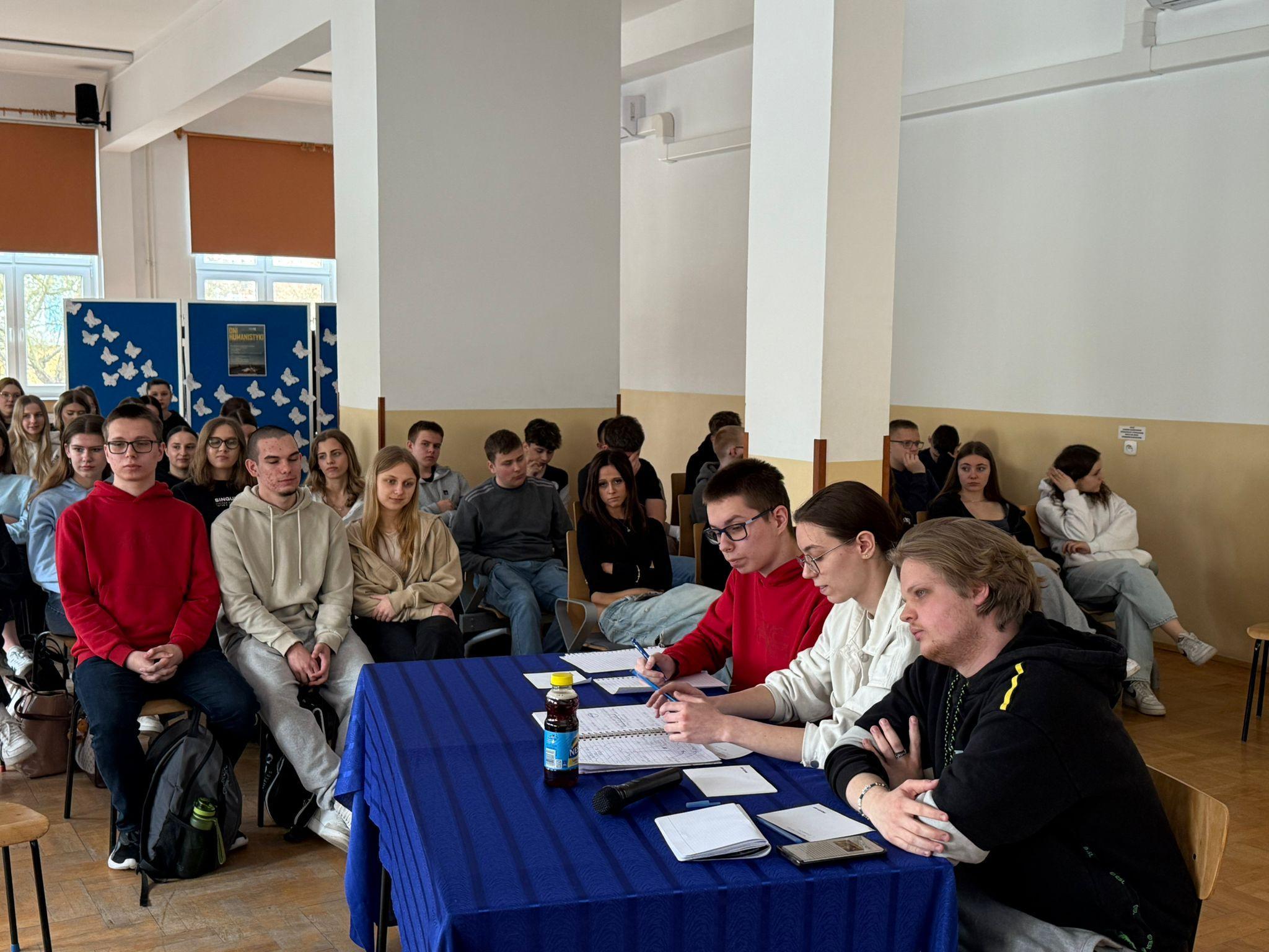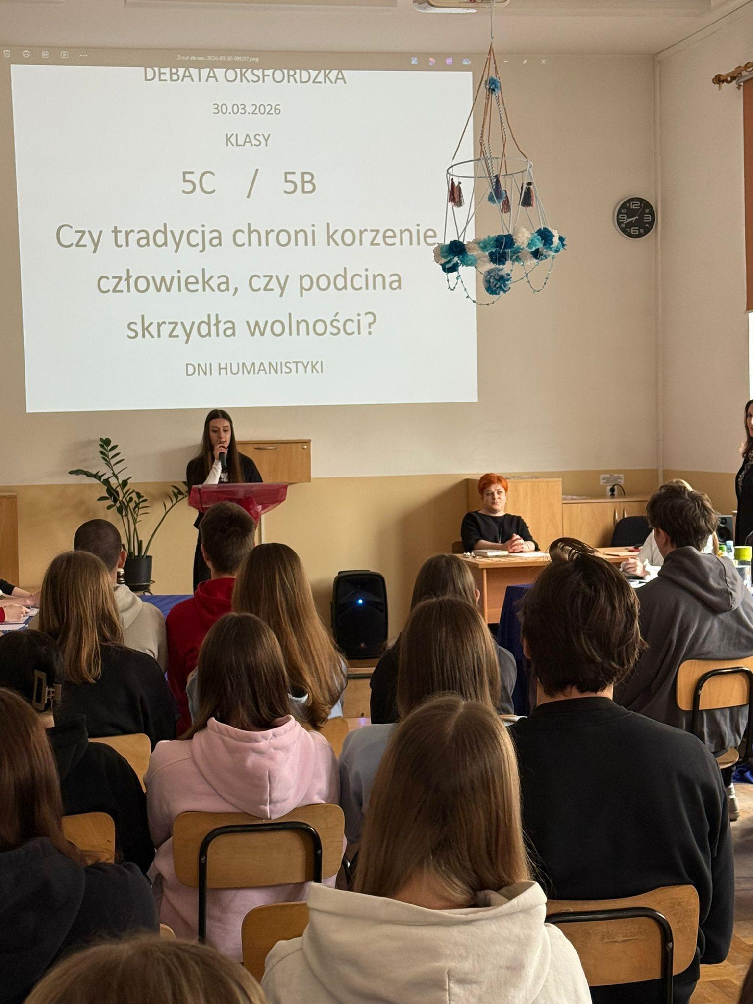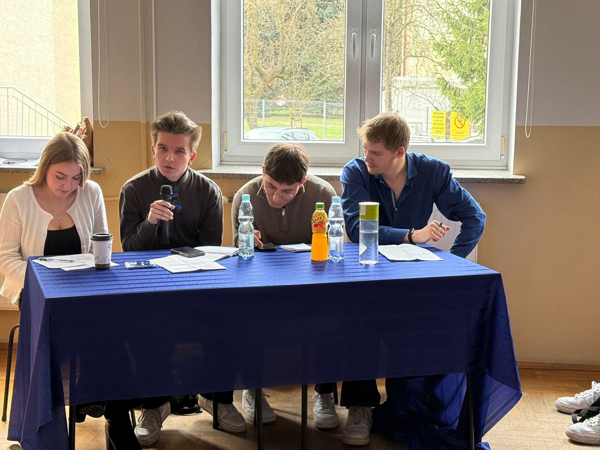 Nad sprawnym i kulturalnym przebiegiem spotkania czuwała przedstawicielka klasy 2a, dbając o to, by każda ze stron mogła w pełni wybrzmieć. Starciu bacznie przyglądała się publiczność z klas 5b, 5c oraz 1a, która z zapartym tchem śledziła kolejne riposty.