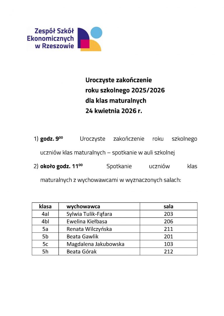 Uroczyste zakończenie roku szkolnego 2025/2026 dla klas maturalnychprzez Ekonomik21/04/202621/04/2026