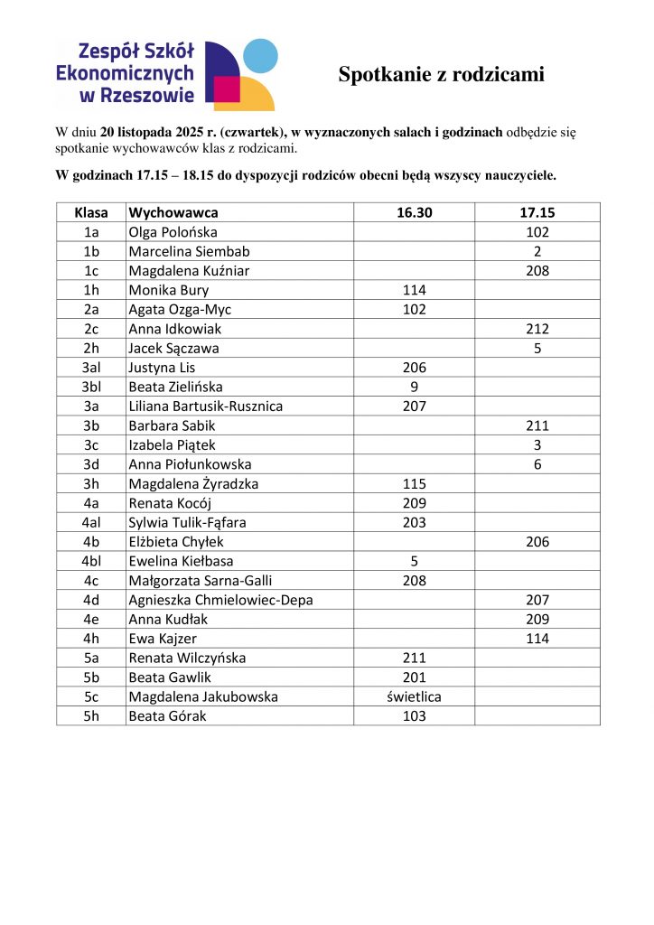Klasy i wychowawcy